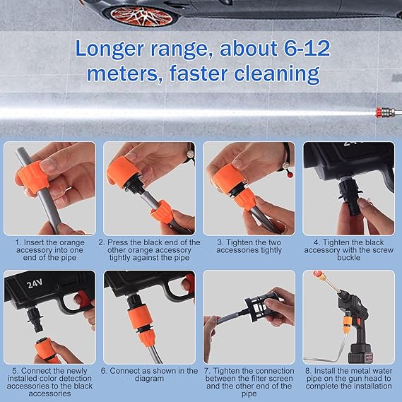 Equipado con una boquilla 6 en 1 y una boquilla ajustable de 180°, al girar la parte delantera de la boquilla, puede elegir al menos 7 modos de pulverización de agua, y la combinación de dos boquillas limpia las manchas de la superficie y limpia a fondo las grietas y esquinas, manteniendo sus objetos favoritos limpios como nuevos.